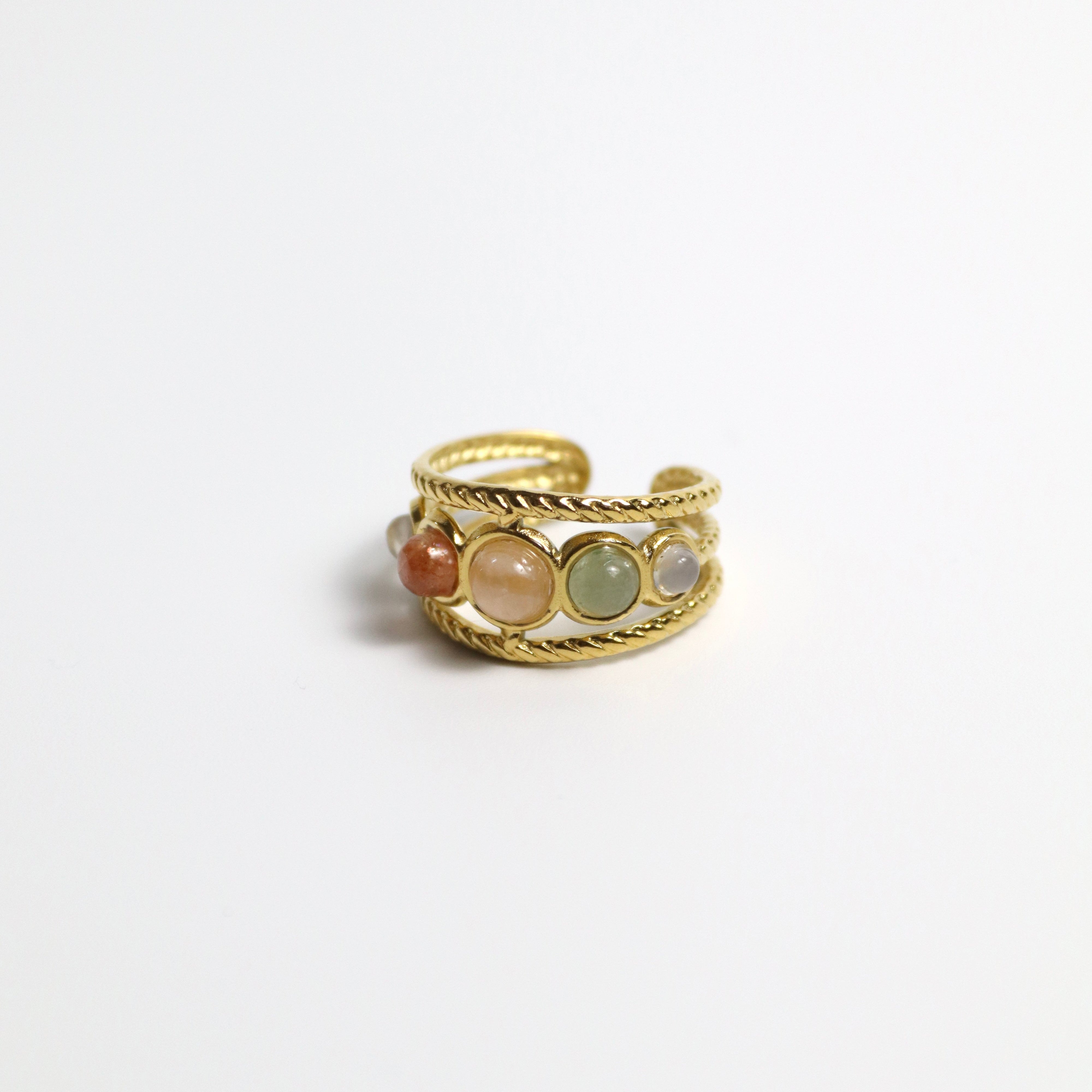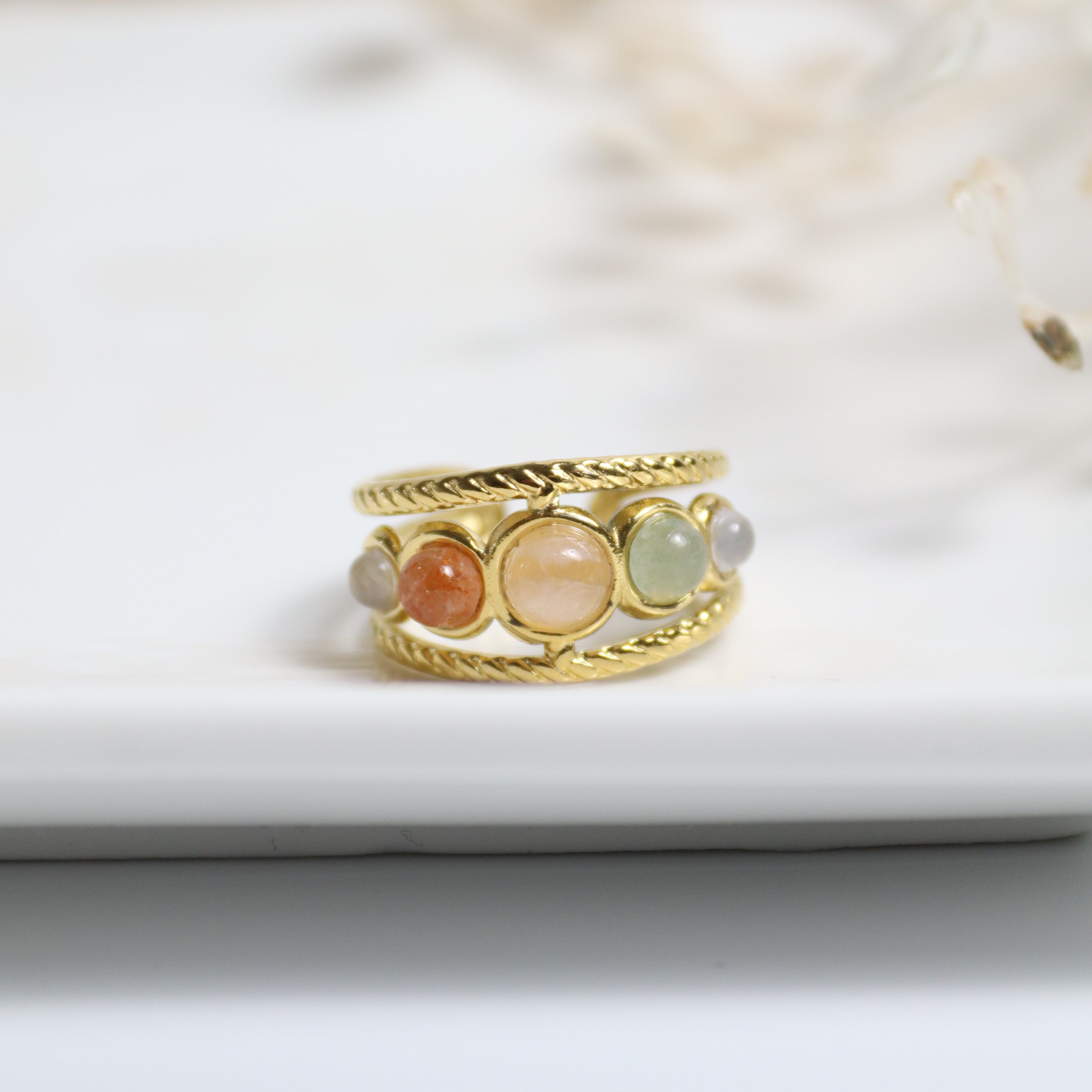 Bague Nahia – cabochons multicolores en acier inoxydable doré 316L.