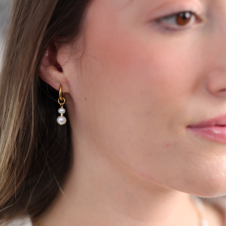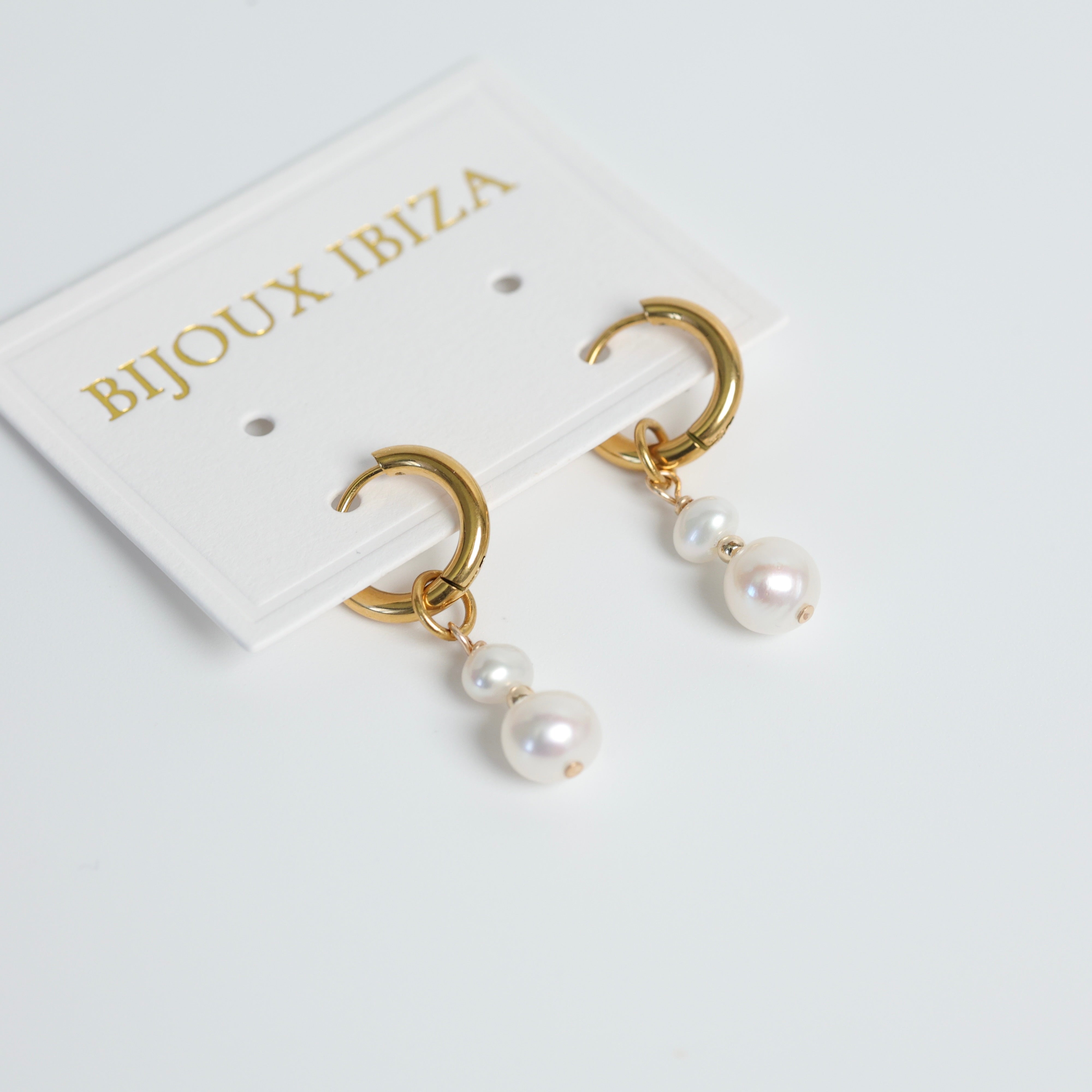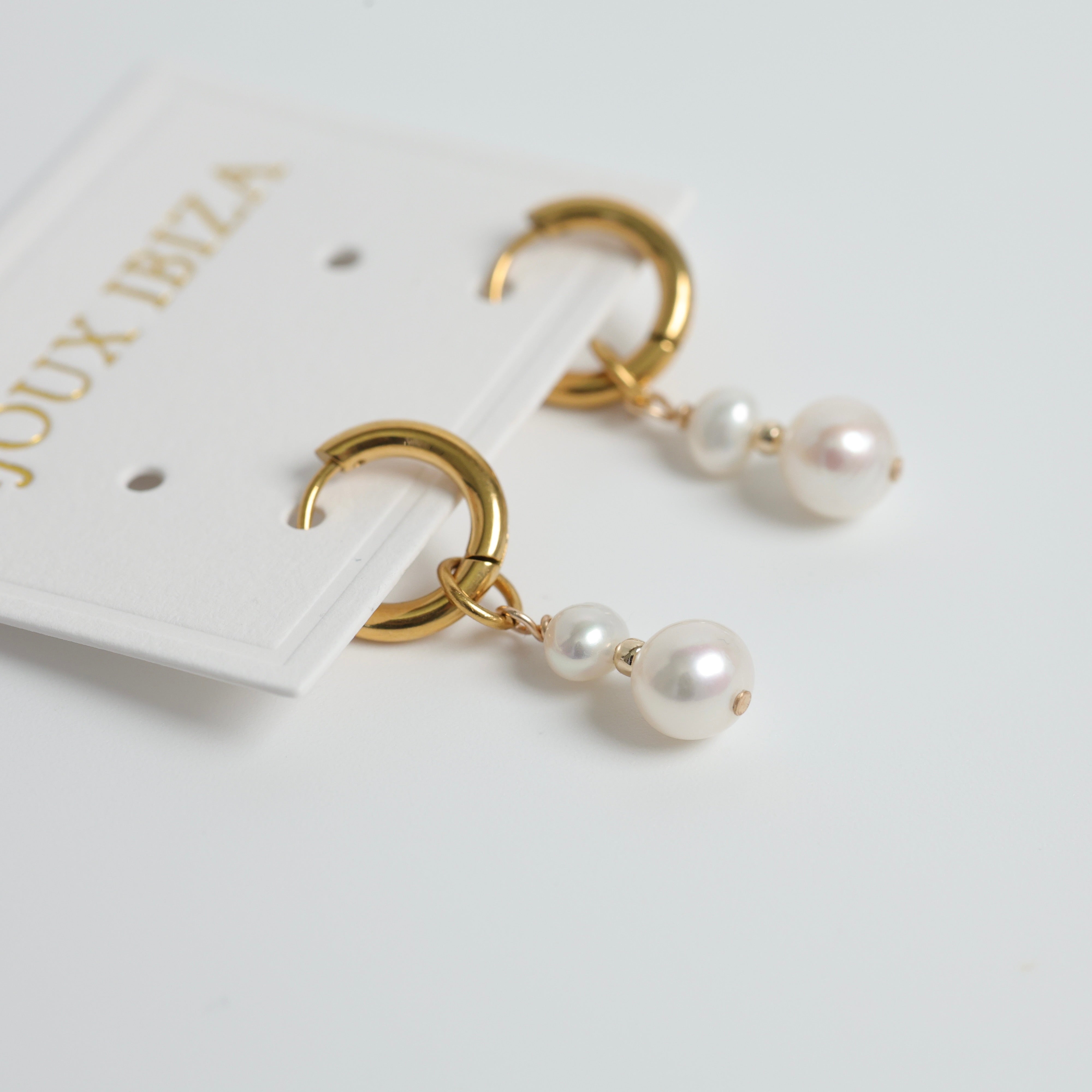 Leur créole ronde de 14 mm est sublimée par deux perles délicates.
