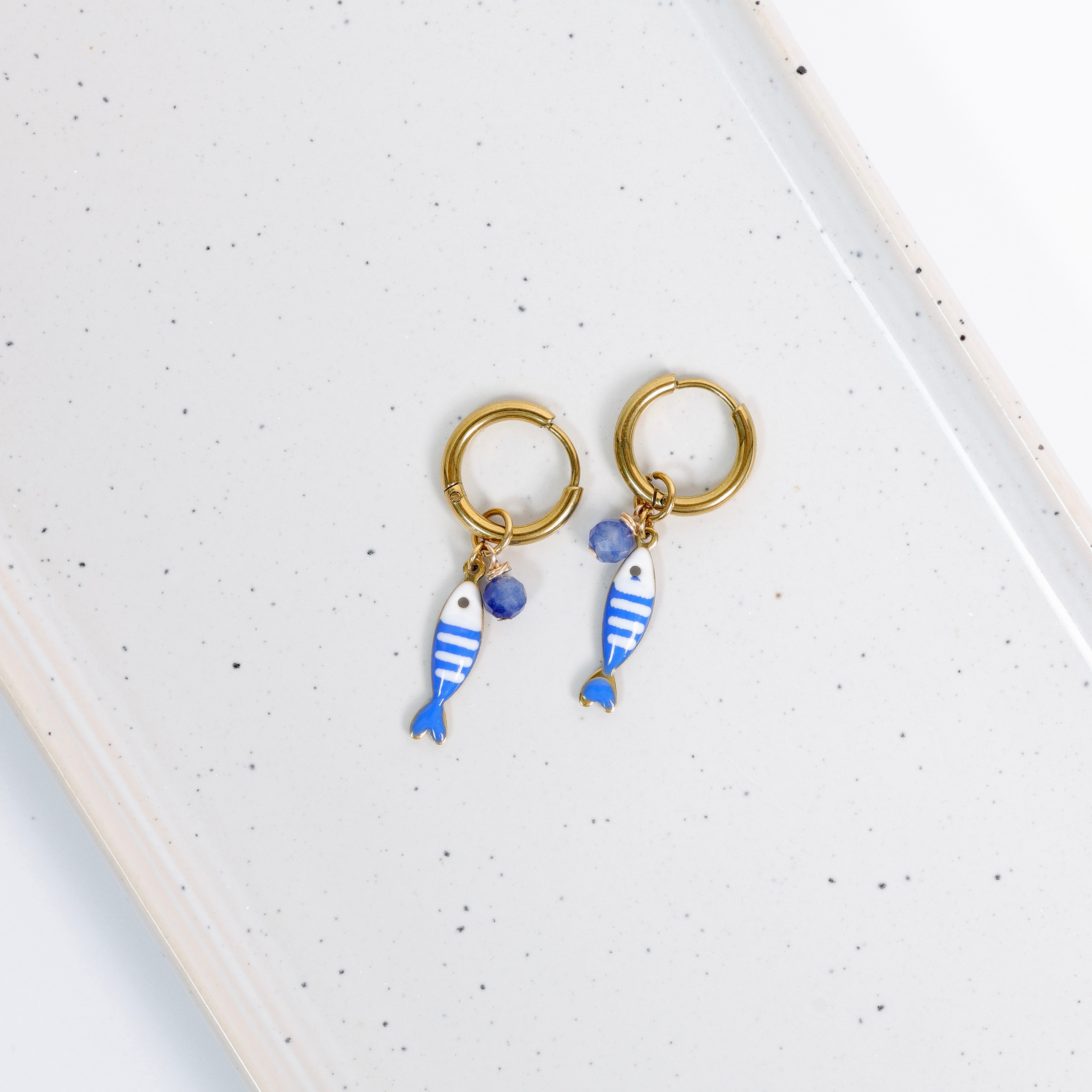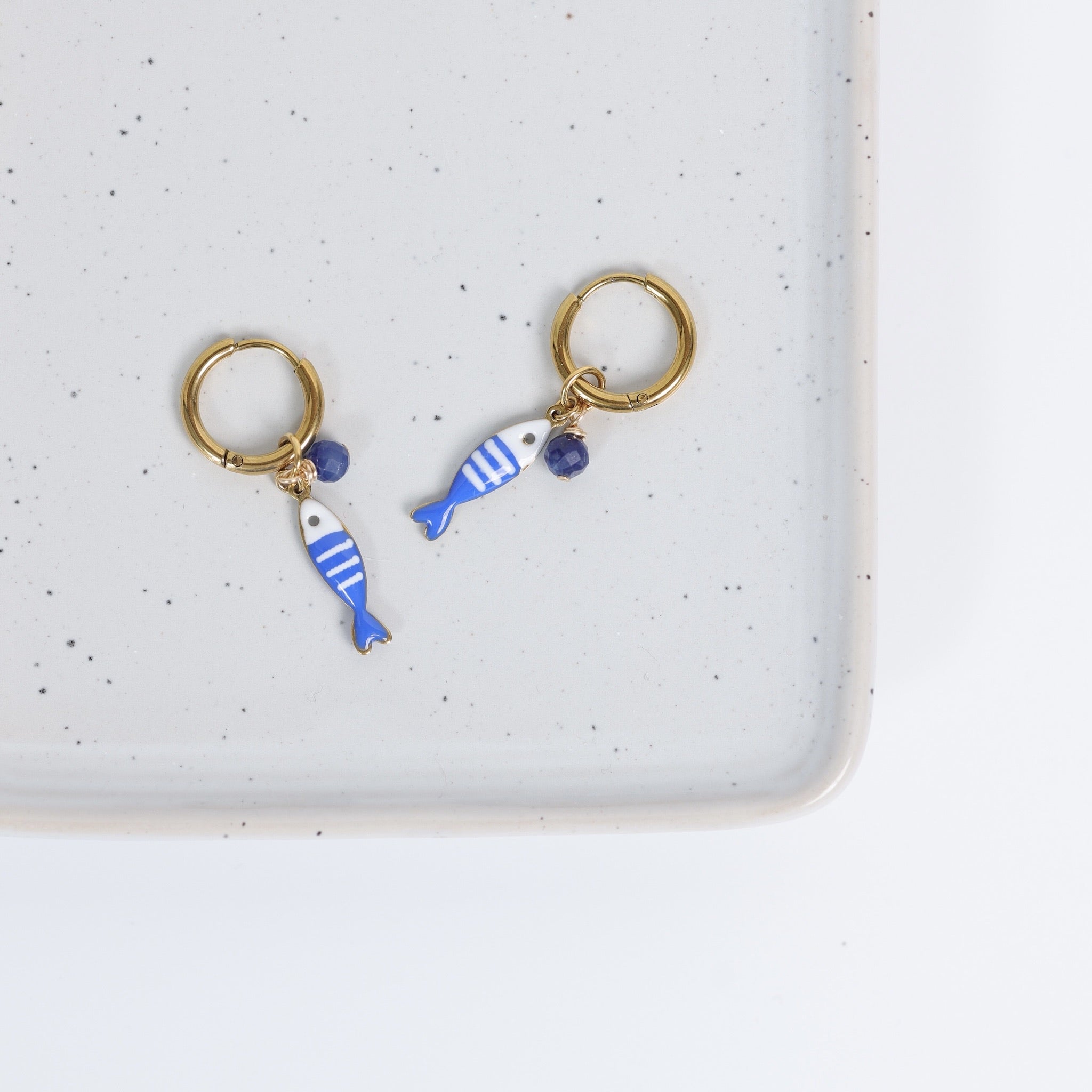 Boucles d’oreilles Porto – Poisson & pierres bleues