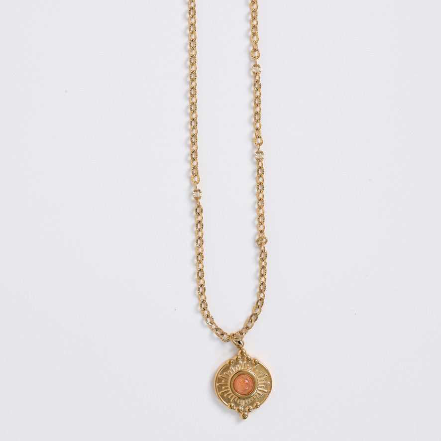 Collier Soleil Doré en Acier Inoxydable avec Pierre de soleil.