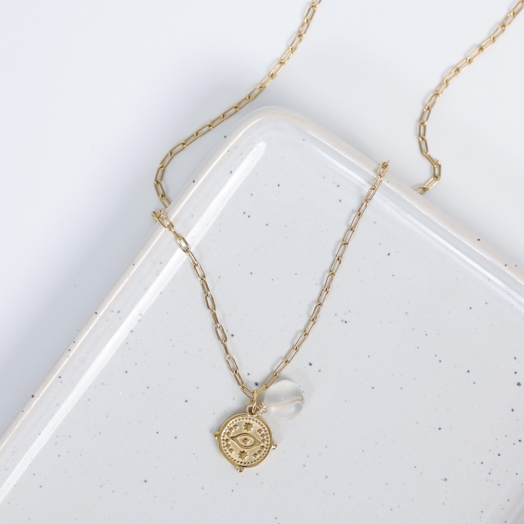 Collier Luna– Chaîne dorée & médaillon œil protecteur