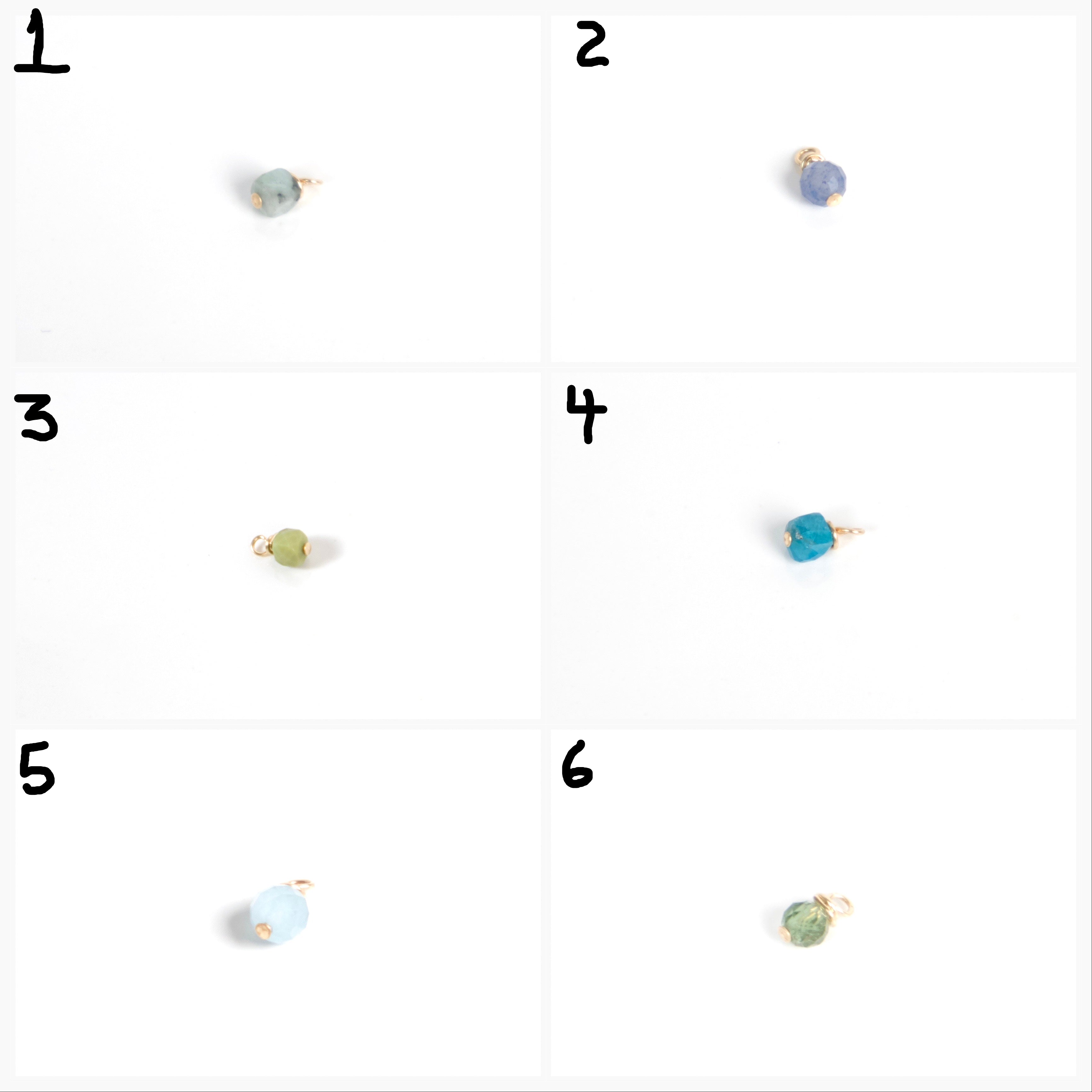 Une pierre naturelle (plusieurs couleurs disponibles : bleu pâle, rose, vert, quartz, etc.). 3-4mm