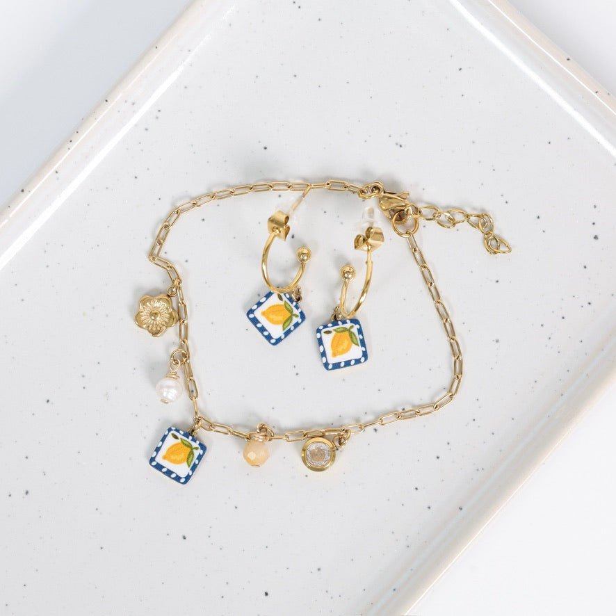 Inspiré de la côte amalfitaine, le bracelet Amalfi évoque le soleil, les agrumes et l’art de vivre méditerranéen. Sa breloque illustrée d’un citron apporte une touche fraîche et originale, parfaite pour les amoureuses de l’été et des bijoux qui racontent une histoire.