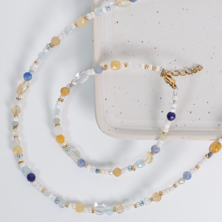 Des perles bleues aux tons apaisants, quelques touches claires qui accrochent la lumière, et une finition délicate qui le rend facile à agencer avec tout. Un vrai coup de cœur pour celles qui aiment les bijoux simples, mais pas plates 🤍
